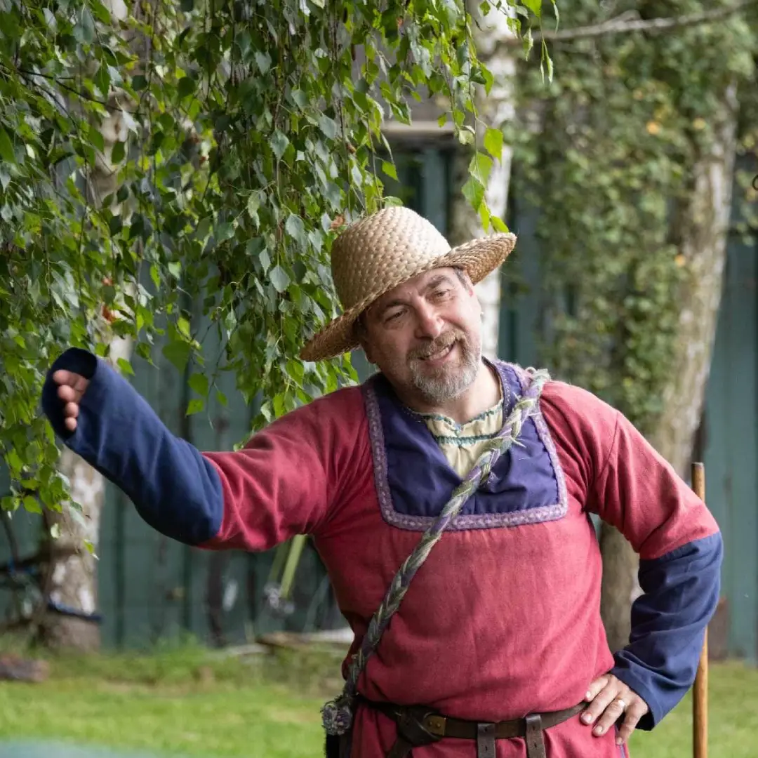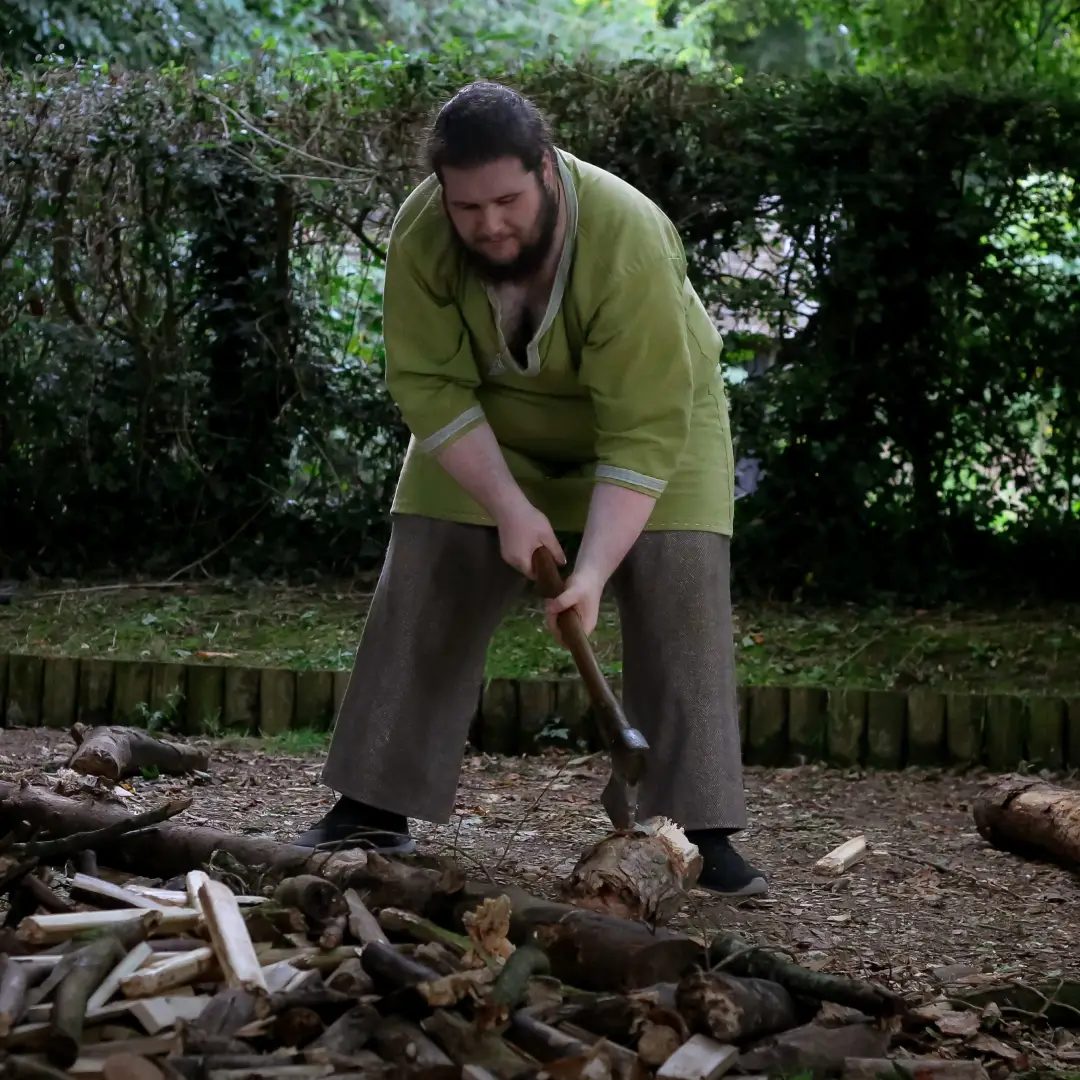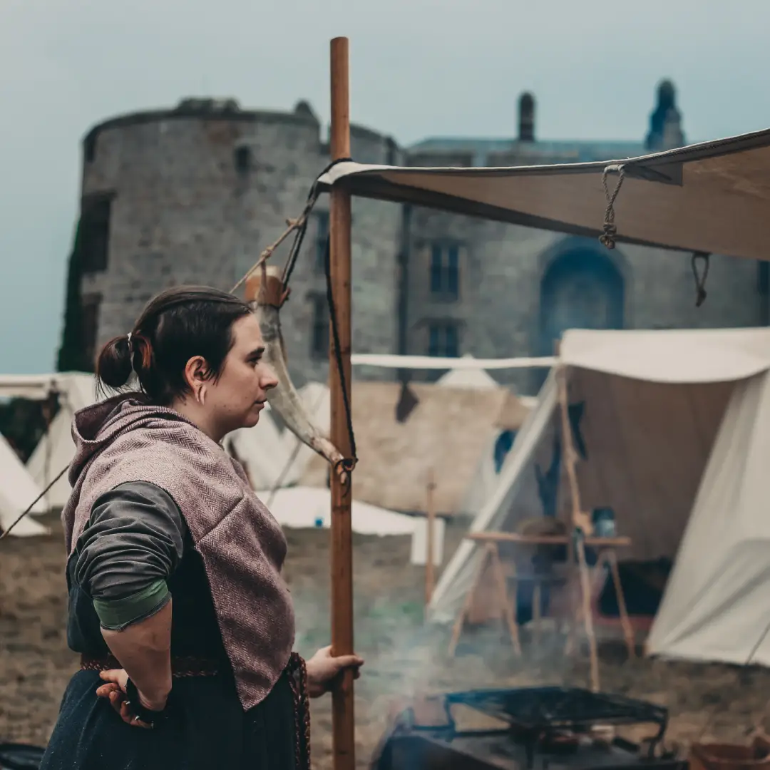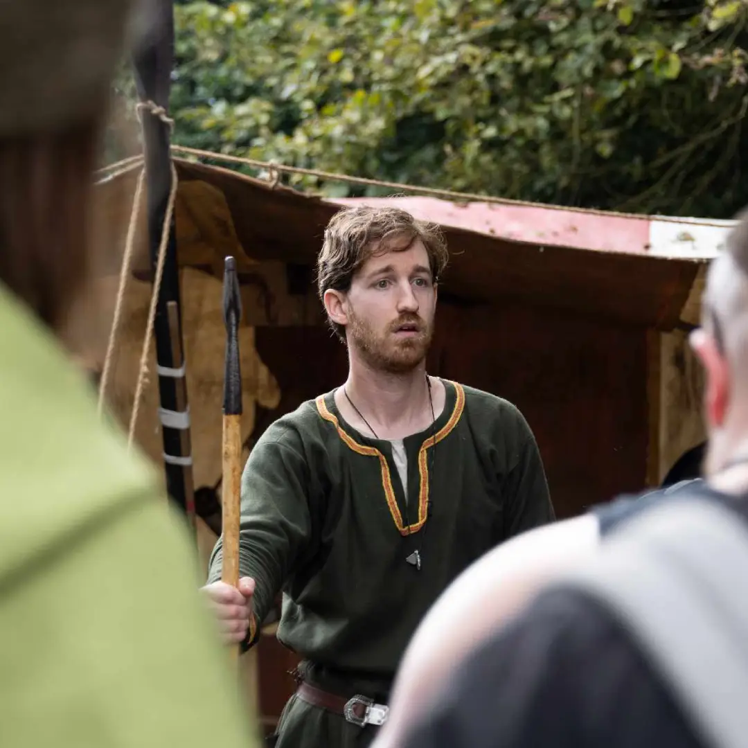 Here, we sample the Viking way, gathered around the central cooking fire to meet the public and educate about the history of the Viking Age. In the encampment the public can meet Viking warriors, try on their armour and helmets, hold a shield and sword and maybe, if they are unlucky, be clamped in slave-chains. Around them craftsmen are at work, warriors are repairing and maintaining their weapons, a harpist plays and over the fire, our evening meal cooks.